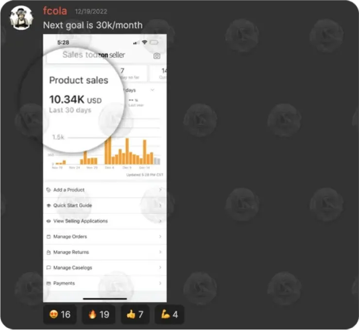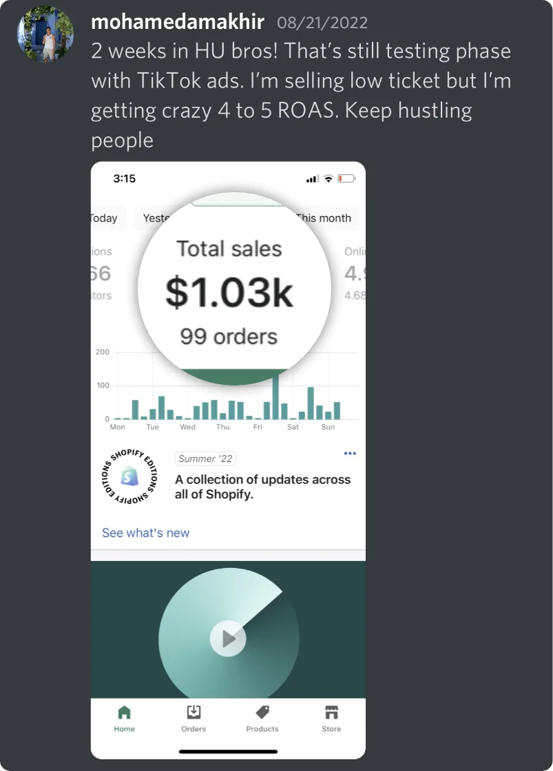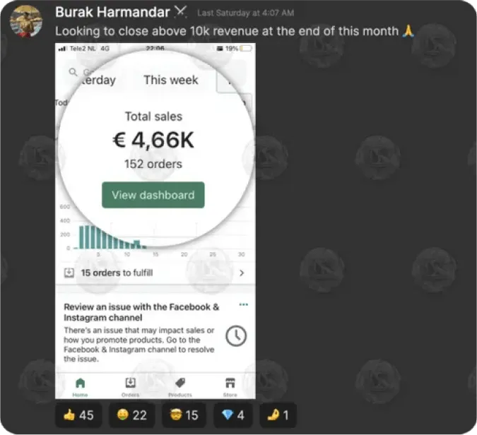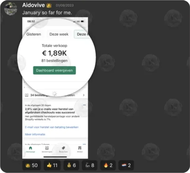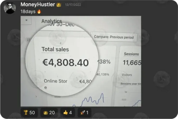 Within 5 weeks he generated €22,000 in revenue (€4,500 profit) through Ecommerce.